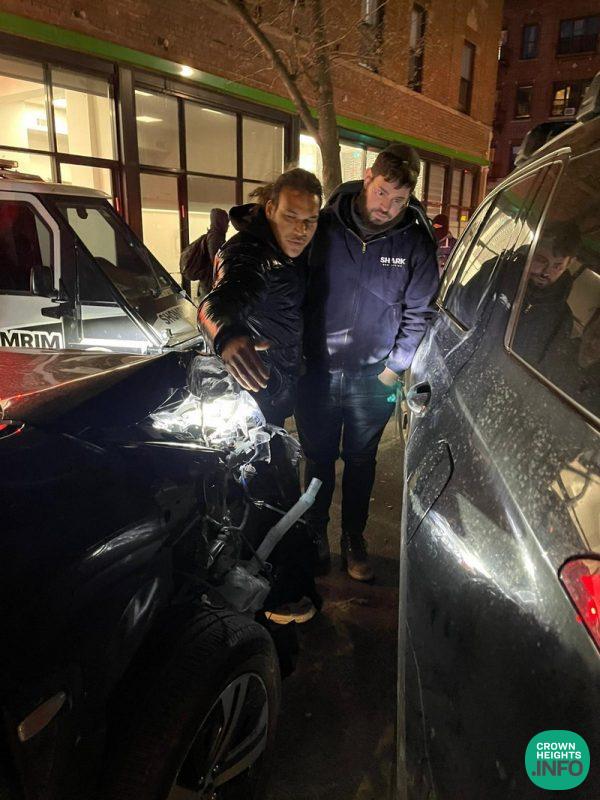 Crown Heights Shomrim received a call around 6:00pm regarding a person driving erratically on Troy Ave near Montgomery Street, and that the driver had actually crashed into a parked car.