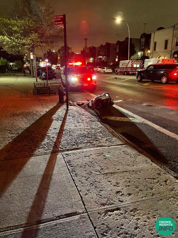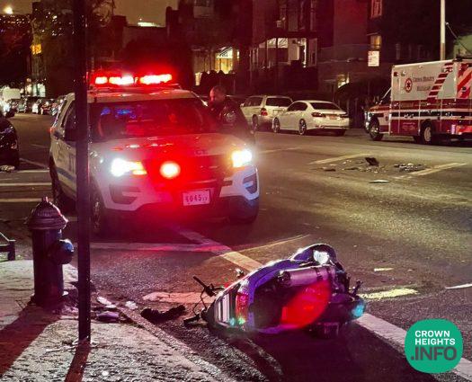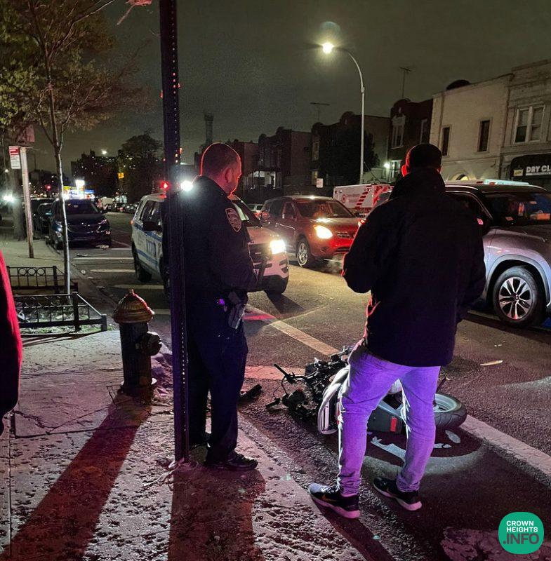 According to witnesses, the car had been in the middle of making a U-Turn near the Hatzalah Ambulances parked on Empire Blvd around 8:00pm, when the moped with two riders accelerated, striking the front of the car.