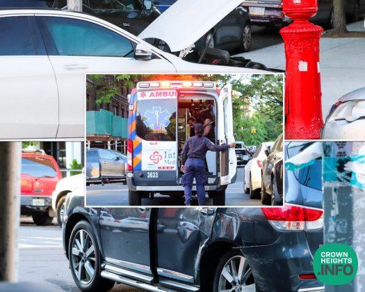 According to reports, a white Mercedes sedan crashed into a Nissan Pathfinder at the intersection of Kingston Ave and Lefferts Ave before 6:00am, sending the Mercedes into red emergency services call box and the pathfinder spinning completely around.