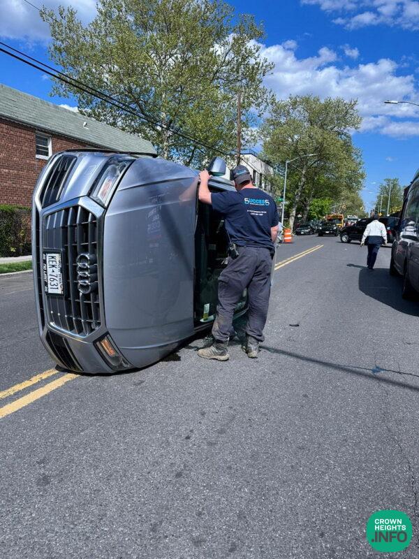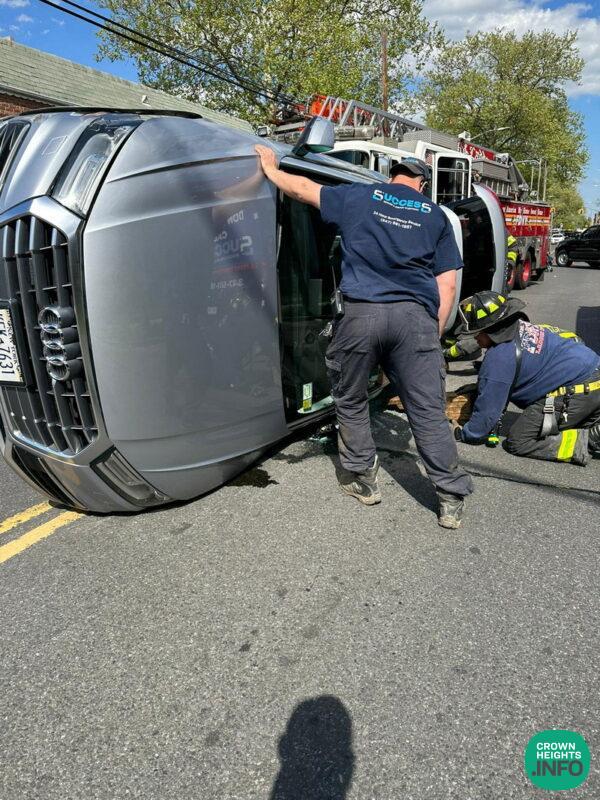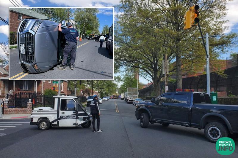 “Our volunteers were alerted to the scene of an overturned vehicle with a pin,” Crown Heights Shomrim wrote on Instagram. “They immediately called 911 and kept traffic flowing smoothly, ensuring that Firefighters were able to access the scene and begin their extraction and rescue efforts.”