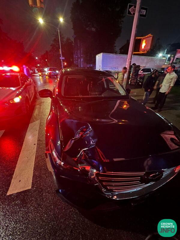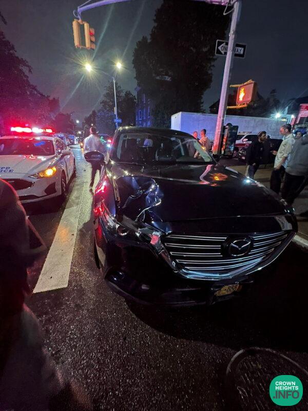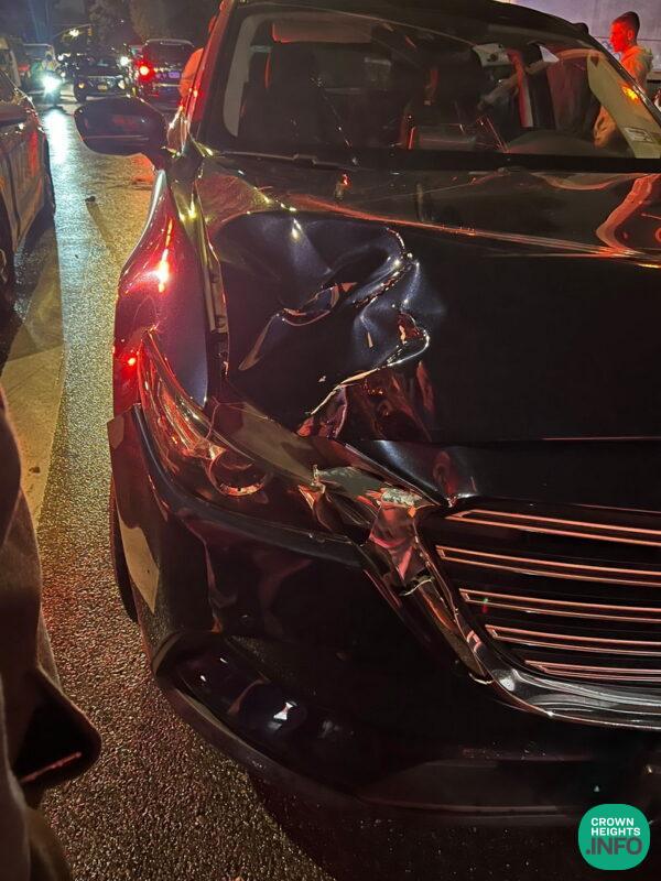 According to reports, the driver of the vehicle was speeding down Brooklyn Ave and struck the teenage bochur at the intersection of President Street. The impact as so hard that the vehicle sustained significant damage.
