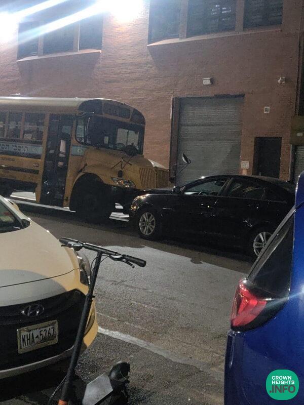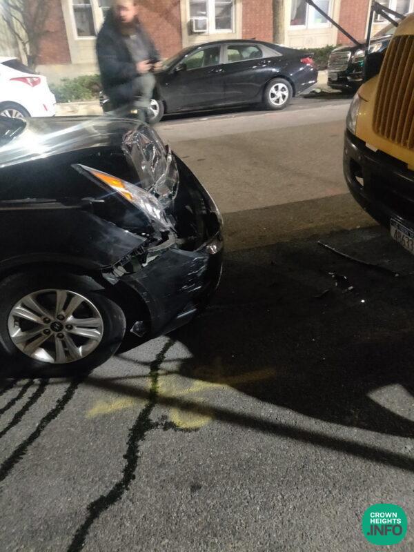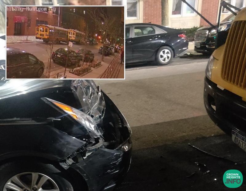 Surveillance footage from Albany Ave between Montgomery and Crown showed the moment the driver, clearly unable to drive appropriately, veered head on into a school bus, causing significant damage to his vehicle.