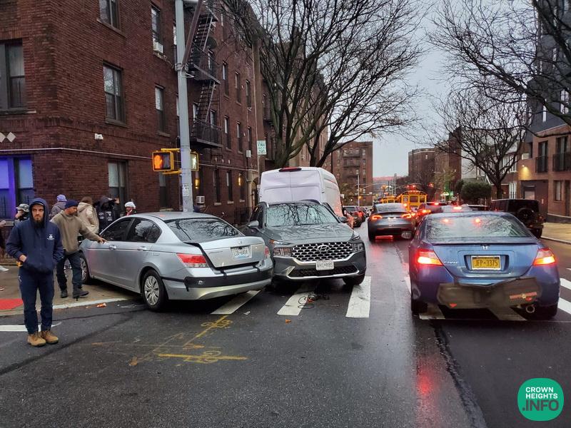 Another three car motor vehicle accident jarred the streets of Crown Heights Monday, when a driver ran a red light and struck a vehicle.