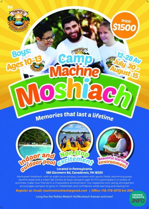 With limited spots available, it is recommended to register early to secure a place for your child. To register, please contact the camp email: machnemoshiach@gmail.com. or call the office 718-778-8770 Ext 200.