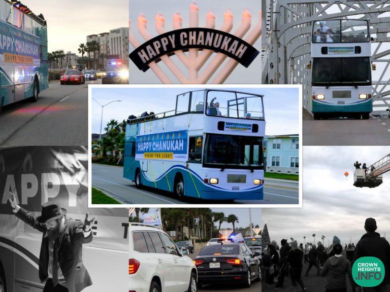 At Chabad of Coastal Bend in Corpus Christi, Texas, the car Menorah parade was led by a double-decker bus, and some cool cars. This was followed by a double Gelt and Dreidel Drop from both a Firetruck and an airplane.