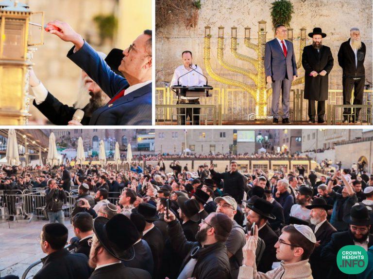 Thousands of spectators from around the world joined the lighting of the first night of Chanukah at the Western Wall with the participation of Rabbi of the Western Wall Rabbi Shmuel Rabinowitz and the Mayor of Jerusalem Mr. Moshe Leon.