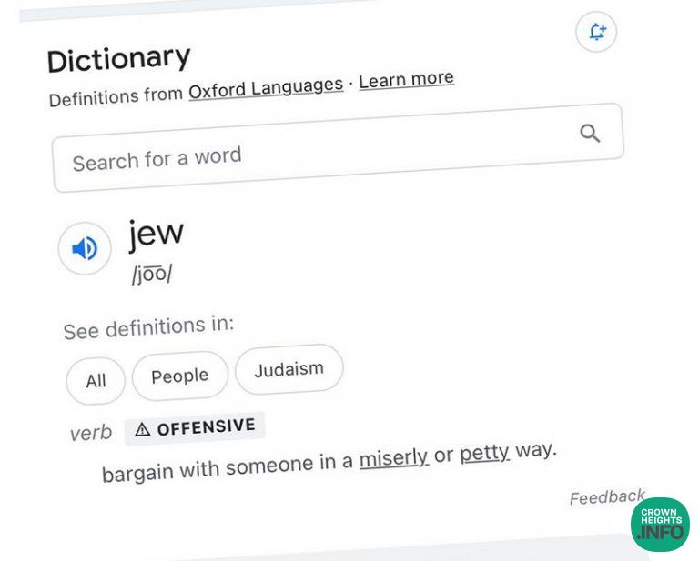 In what can only be hoped for as a colossal misunderstanding, or perhaps a warped algorithm, Google search for “Jew” comes up with the offensive definition “bargain with someone in a miserly or petty way.”