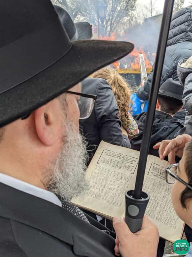 Rabbi Nechemia Alter, the son of the Gerer Rebbe, visited the Ohel on Wednesday. Upon leaving, a group of Bochurim learning at the Ohel gave him the Sefer “Otzros Hamoadim” – the Rebbe’s Torah about Shvuos, and spoke with him about Shnas Hakhel and Matan Torah based on the Rebbe’s Teachings.