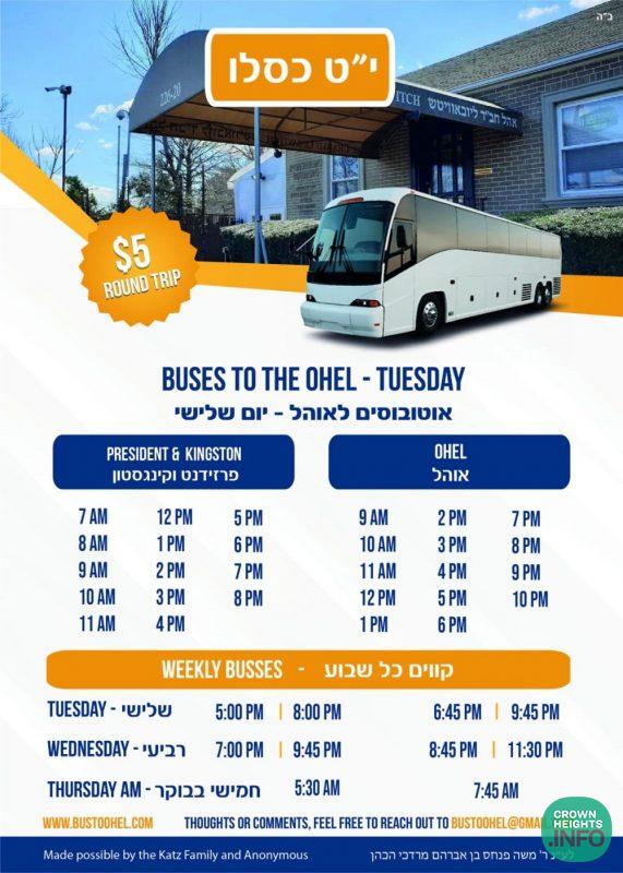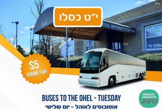 In honor of Yud Tes Kislev, special buses will be making round trips to and from the Ohel throughout Tuesday, the day of Yud Tes Kislev.