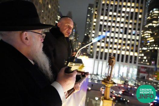 For me to light this symbol of Jewish pride in the center of my city is something I am very proud of – as the grandson of Holocaust survivors – experiencing this was really special. Facing the Plaza Hotel, in front of the Apple and Dior stores in front of Central Park, we gathered.