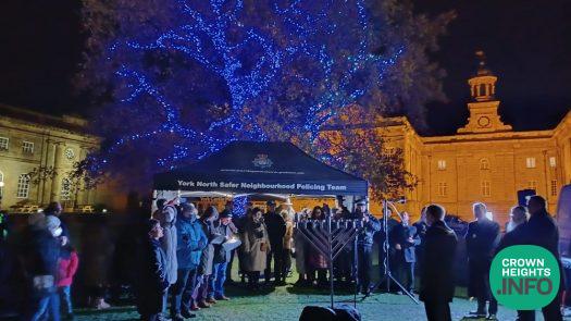 The North Yorkshire Police published a press release, saying “We celebrated Hanukkah with the local Jewish community on Sunday in York. The event, which attracted attendance from the Jewish communities in Harrogate and York as well as Leeds and Manchester, was held at the foot of Clifford’s Tower – a significant location in British Jewry.”