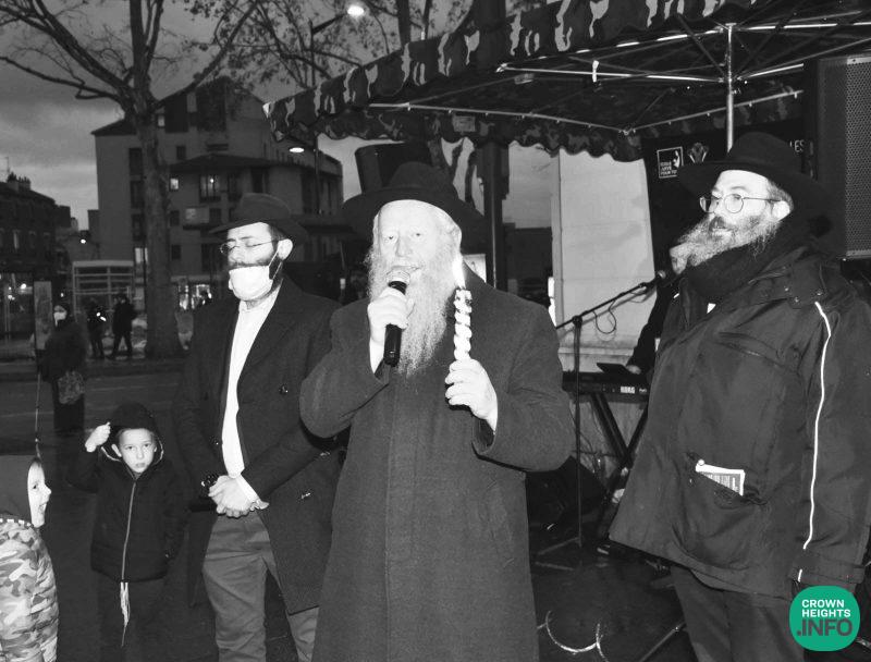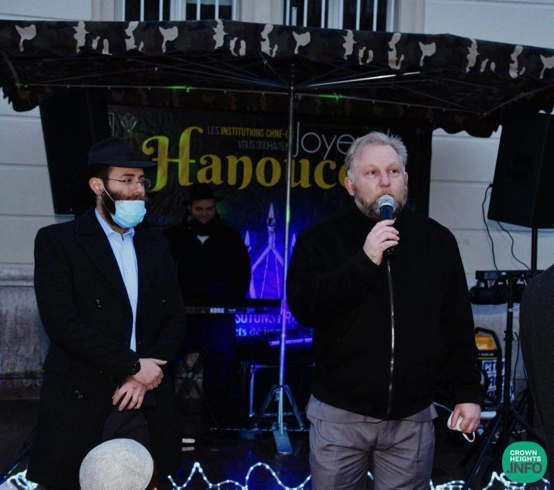 As he kindled the Shamash, the non Jewish government official spoke of the importance of the Jewish community in Aubervilliers.