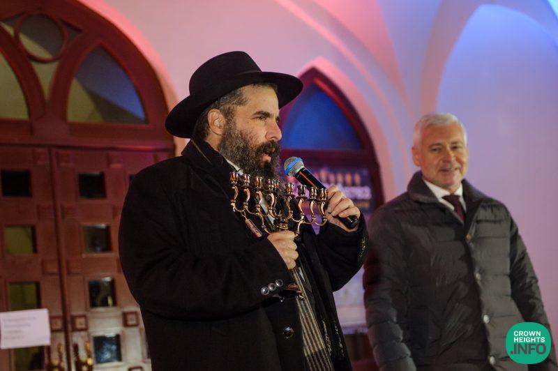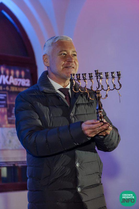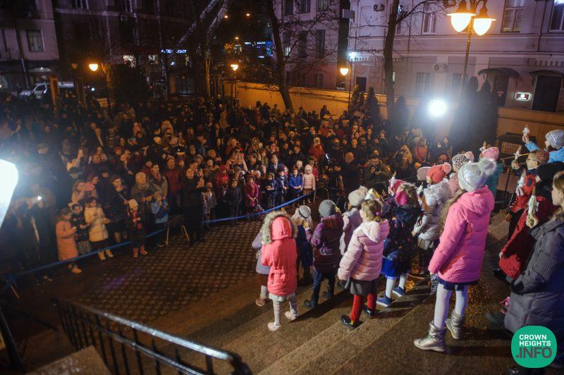 This year the mayor of Kharkov, Igor Terechov joined Rabbi Moshe Moskovitz for the lighting of the large menorah on Pushkinskaya St! The mayor was clearly impressed with the crowd and shared the message of Chanukah to add light and goodness in the world.