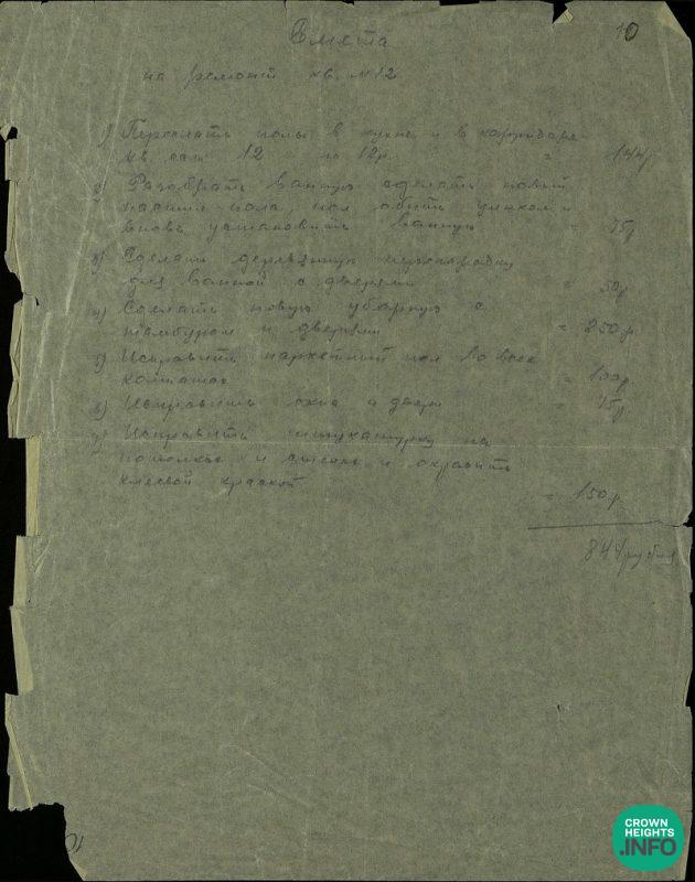 The Schneerson apartment in St. Petersburg, Russia was located on the corner of Pestel St and Mokhovaya St during the mid-1920’s, and a plan of the apartment can be found in the Schneerson Collection.