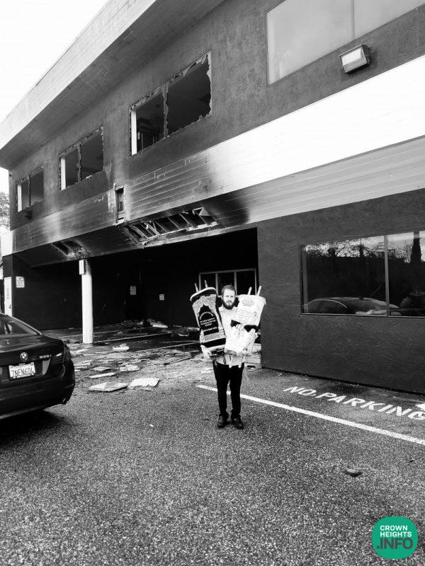 A friend of Rabbi Mendel’s, a Jewish firefighter, contacted the rabbi and he immediately rushed to The Chabad House in hopes of saving the Torah scrolls, but he was too late. A community member, Jacob Cohen had arrived on the scene before the rabbi, having heard from a colleague that there were firetrucks at the property. Jacob tried unsuccessfully to reach the rabbi so drove over to see how he could help. When he arrived at the edge of the driveway he was greeted by clouds of thick smoke and firefighters hard at work. He explained to the nearest one the significance of the Torahs and other holy objects and asked the firefighter to check on their status. “He told me he could not make any promises, but he risked his safety to re-enter an unstable building and was able to bring out the two Torahs and a drawer with the Talits and Tefilin,” Jacob said. “These are the true heroes, the ones who risk their lives every day for us.”