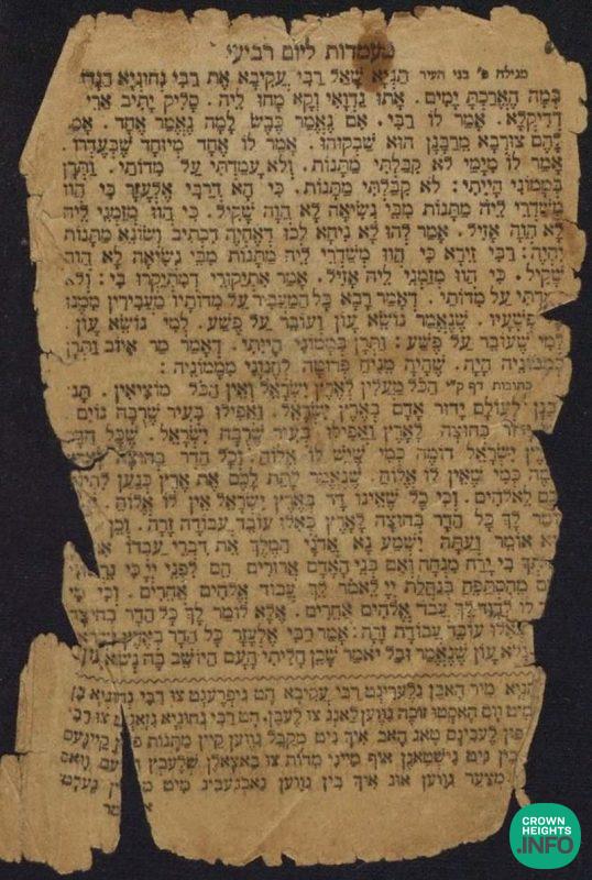 Pages from heavily worn sefarim were often used as bookmarks in the Schneerson Library. For example, about hundred years ago (or even more), the unknown reader marked a certain passage in the Sefer Ein Yakov printed in (Vilna, 1879) with a page taken from the Seder Ma’amadot.