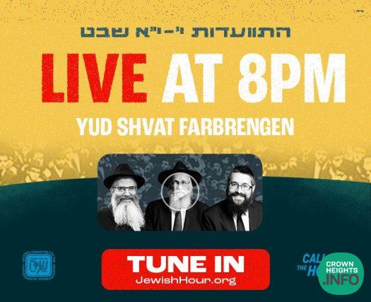 LIVE: The Central Yud Shvat Farbrengen Will Begin Tonight at 8pm!