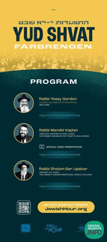 The farbrengen will be filled to the brim with insightful dialogue, stories, and lessons that will inspire us and connect us to the Rebbe on this auspicious day.