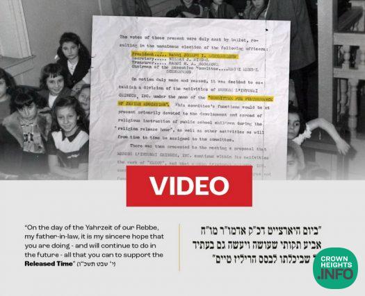 “On the day of the Yahrtzeit of our Rebbe, my father-in-law, it is my sincere hope that you are doing – and will continue to do in the future – all that you can to support Released Time.”