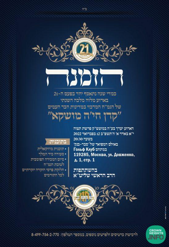 For the twenty first time, guests will gather on Motzei Shabbos Parshas Tetzave, for an evening dedicated to tzedakah and chesed, where they will be able to catch a glimpse of the many different aid programs that benefit the Jews of Russia, and Moscow specifically. They will also learn about the new projects that have been added at the behest of the Chief Rabbi during the last two years, with the pandemic causing many more people to require assistance.