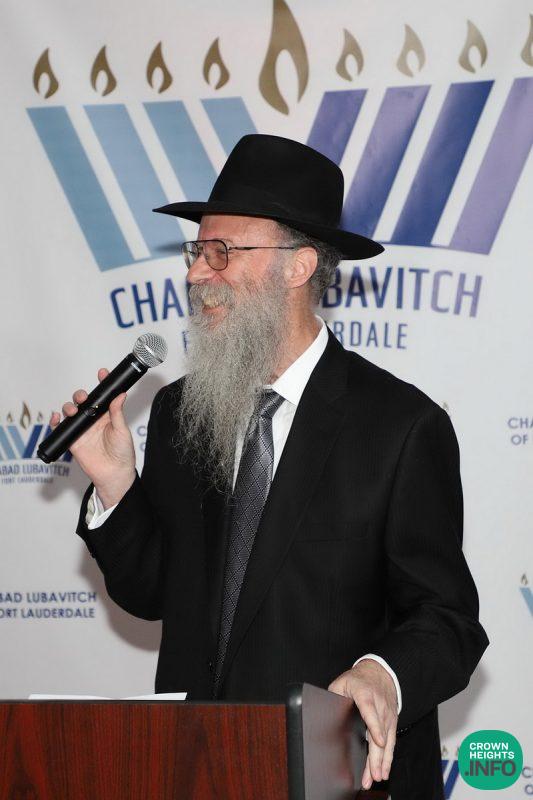 At the dinner, Shliach Rabbi Moishe Meir Lipszyc Director of Chabad Lubavitch Fort Lauderdale pointed out that we are just beginning the Month of Adar, when we must increase in happiness, and even more so as this year we have 60 days. What better way to start off, than by celebrating the completion of a new Sefer Torah!