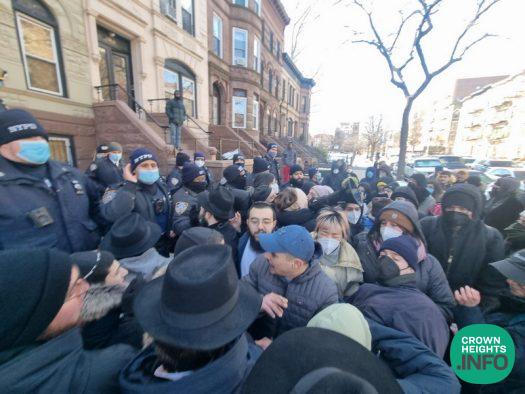 A group of vocal protesters, standing in what they believe is in solidarity with illegally evicted tenants, stood blocking the doorway of the dorm, leading to bochurim attempting to force their way through and ultimately forcing NYPD intervention. No one was injured and the situation deescalated.