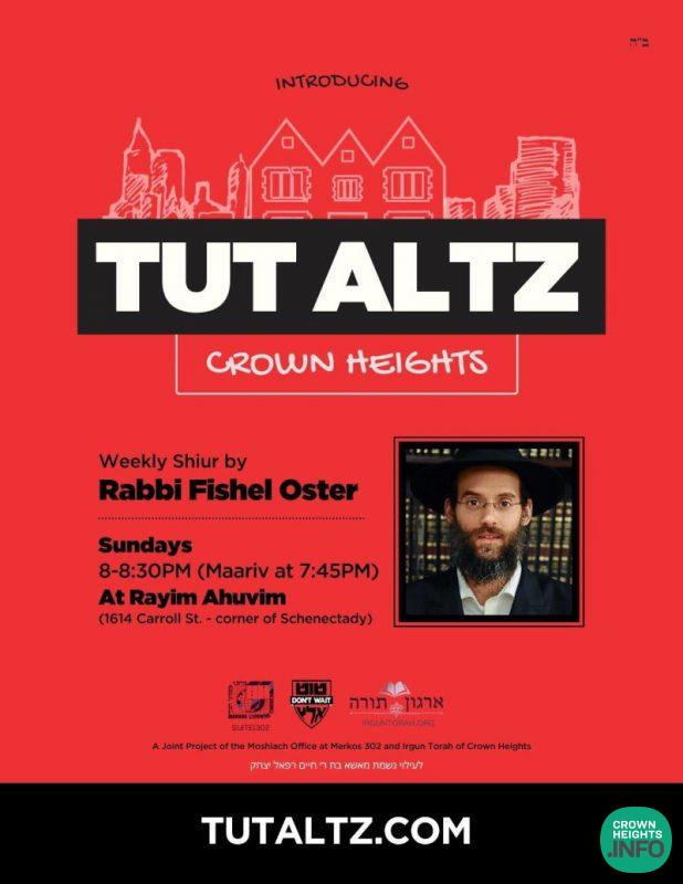 Attendance at Tut Altz shiurim in Crown Heights is swiftly increasing. “It’s a transformative experience,” Rabbi Naparstek reports, “and people are excited to join.”