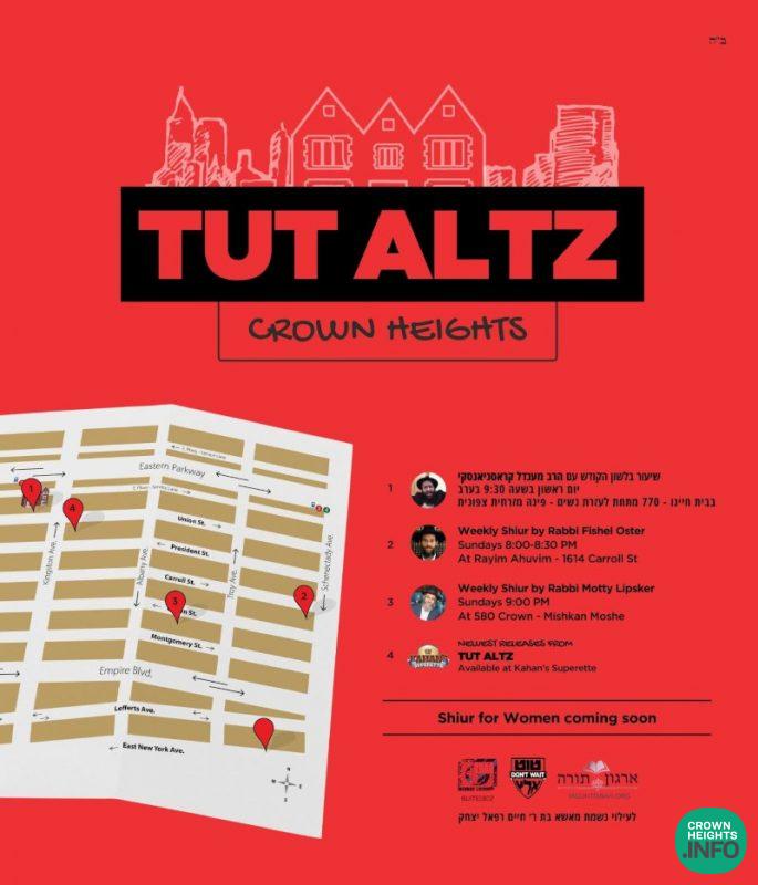For individuals who wish to study the texts on their own, or for teachers and parents who’d like to use the material for their children, the latest copies of Tut Altz are available at Kahan’s Superette on Kingston Avenue.