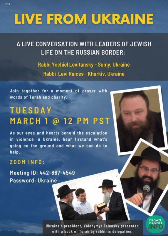 Watch a live conference with Shluchim from Ukraine who will give an in person look at what is going on in the country.