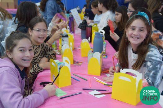 The students then packed several hundred Mishloach Manos packages.Each package contains brownies, sweets, smiley slinkys, bubbles, and a special note from our students telling the recipient how much we love them and care.
