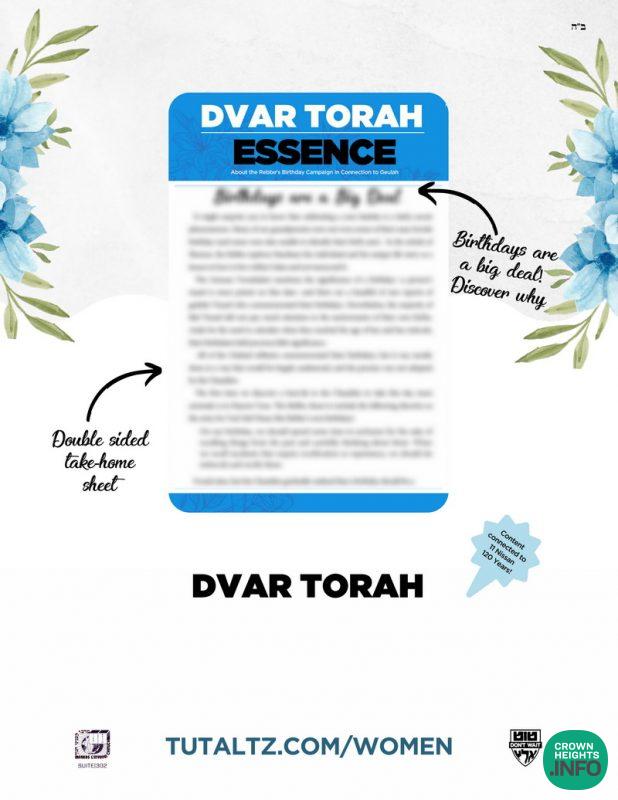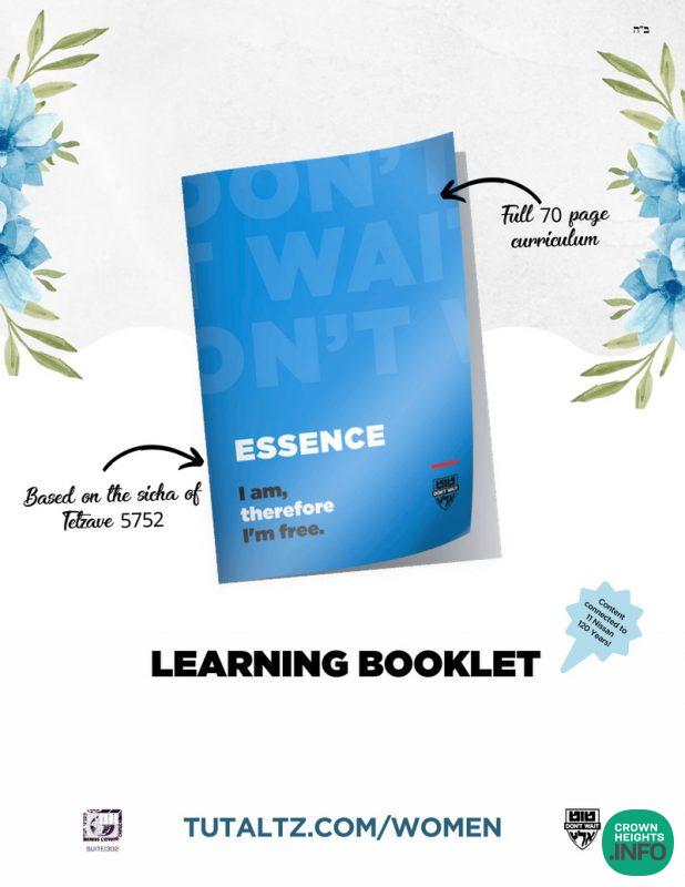 The upcoming “Event in a Box,” now available at TutAltz.com/women, is based on segment five of the ‘Moshiach Mindset’ Tut Altz curriculum – this one called “Essence: I am, therefore I’m free.” The learning content is connected to Chof-Hey Adar and birthdays. “The moment you were born, Hashem told you then, ‘You matter’ – not because of anything you did, would do, or any other form of output. At the moment of birth, you simply “are,” and that’s all that matters,” expresses the program guide.