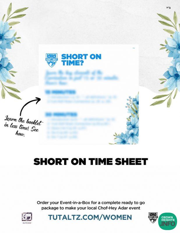 Much of this month’s program was adapted to be clearer and more accessible, based on advice given by those enjoying it. “It’s how we realized that arranging a speaker would be a great addition,” shares Naparstek, “Smaller communities were telling us that they don’t have access to a speaker. We thought: let’s arrange one for them!” This month’s topic will be introduced, in a fifteen-minute pre-recorded professional video, by Mrs. Chanie Kranianski, shlucha to the Upper East Side of Manhattan. The other two additions are an organizer’s guide and a “short on time” sheet to help women learn an abridged version of the content if they do not have the time to learn the entire booklet.