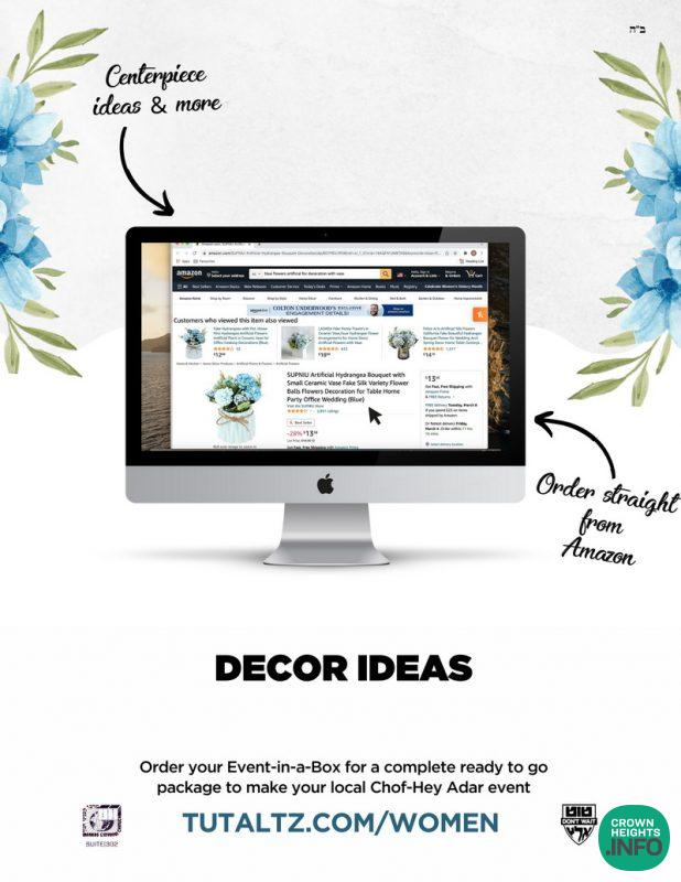 The Yud Shvat program (last month’s ‘Event-in-a-Box’) came with a customizable event program and decor ideas, a video, and a full-on program – including booklets and discussion prompts. Mrs. Blumi Rosenfeld of Pittsburgh, who led one of sixty Nshei Chabad groups around the world, shared: “We had a chavrusa style learning event and the women just loved the material that was provided. We resolved to learn the entire sicha before Chof-Bais Shvat, where we created another event just to review together.”
