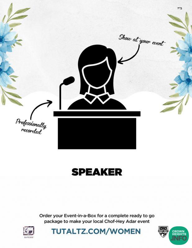 “Our first ‘Event-in-a-Box’ included everything needed for a Nshei Chabad coordinator to arrange a fun and informative program,” says Moshiach Office co-director Mrs. Gitel Naparstek, “the second will be even better. Based on user feedback, we added some new items, including a speaker.”