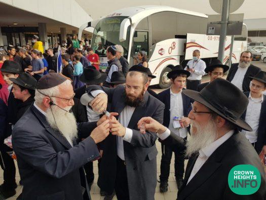 Following a harrowing journey, Rabbi Wilhelm from Zhitomer, along with 90 orphans from Ukraine, landed in Israel to a greeting by a crowd of students from Kfar Chabad who provided gifts and joy to the children as they boarded buses to their new lives.