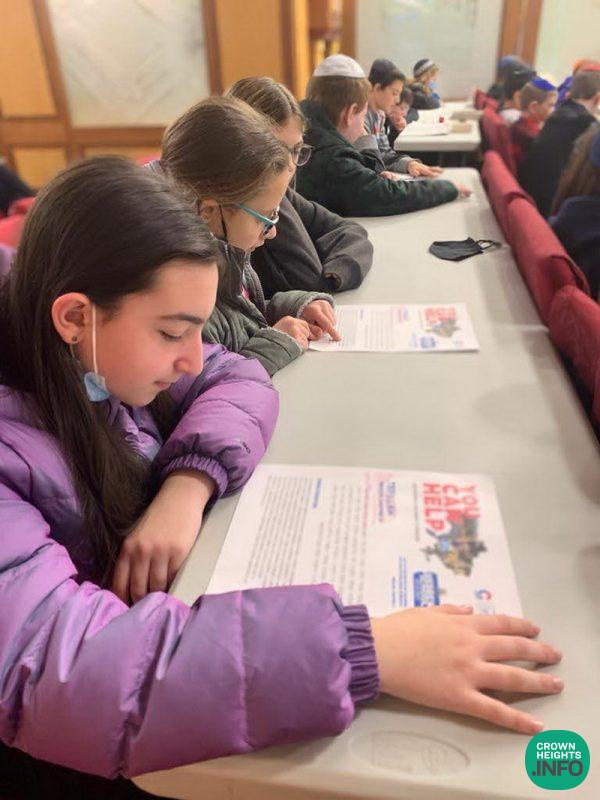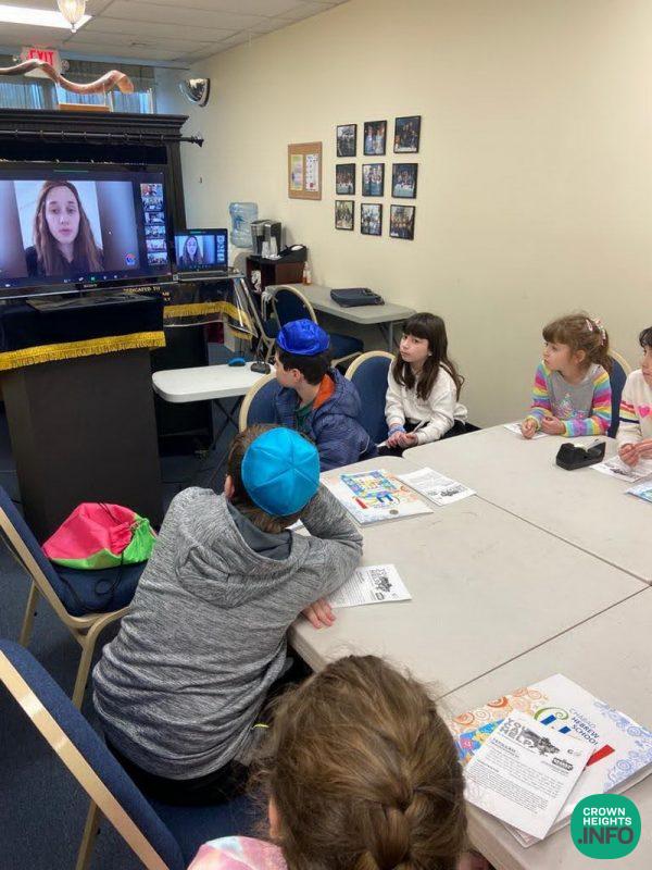 The fifteen-minute program encouraged children to say a kapitel Tehillim and give Tzedakah in the merit of Ukrainian Jewry. Each school gathered in front of a screen or projector, which allowed them to participate in the event live. They even answered in unison when the students at the Chabad Hebrew Schools in Lake Success, NY and Potomac, Maryland, led the rally in reciting “Torah” and “Shema Yisroel.”