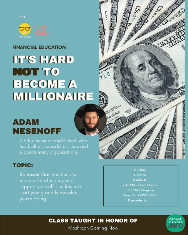 It’s easier than you think to make a lot of money and support yourself. The key is to start young and know what you’re doing. Rabbi Nesenoff will give us insights into how to get started.