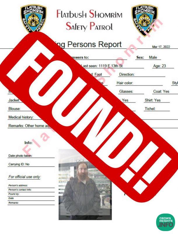 Binyomin L., a Lubavitcher from Crown Heights who is living in a home in Flatbush, was reported missing on Thursday, and as Shabbos approaches has not yet been found.