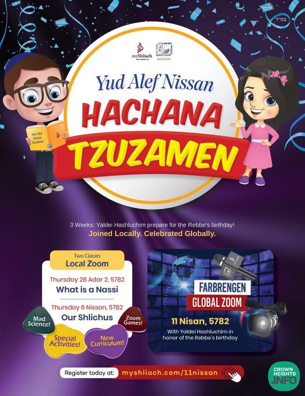 An innovative and remarkably interactive curriculum has been created specifically for this occasion. The children will learn basic concepts regarding the Rebbe as a Nasi and their special Shlichus as part of the Rebbe’s generation. The program, a project of MyShliach at Merkos 302, was specially designed to be used in a virtual setting. Incorporating hands-on activities, experiments, and games, the creators hope the ideas and messages will come to life in their homes.