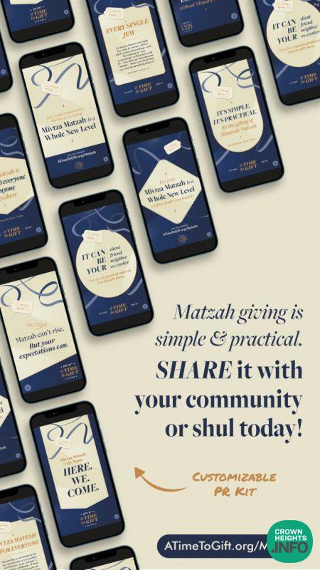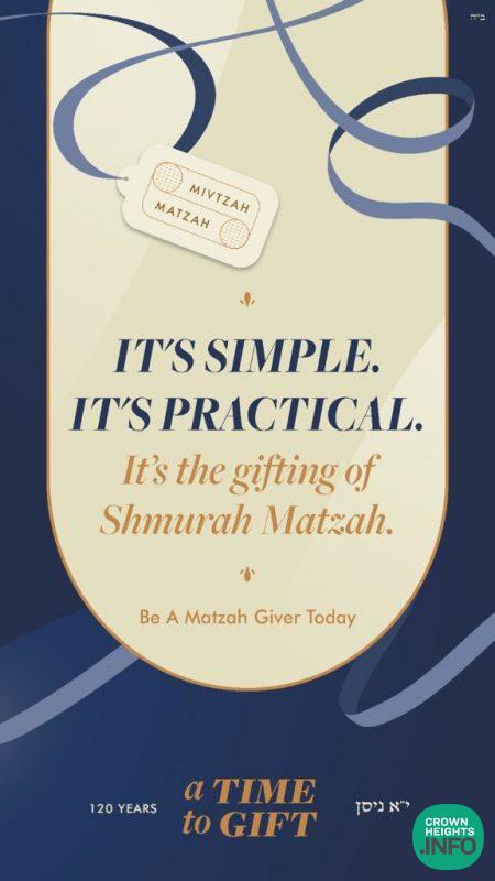 As one of the first mivtzoim of the Rebbe and with the timing of the Rebbe’s birthday, the enthusiasm to join the mivtzah has been so powerful that supplies sold out fast. Organizers have just ordered an additional printing of thousands more custom-designed matzah boxes. These boxes, as well as a limited supply of complementary matzah for Anash communities taking part in this mivtzah for the first time can be ordered at ATimeToGift.org/matzah.