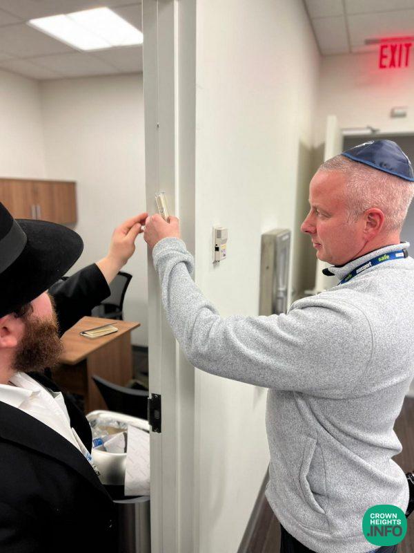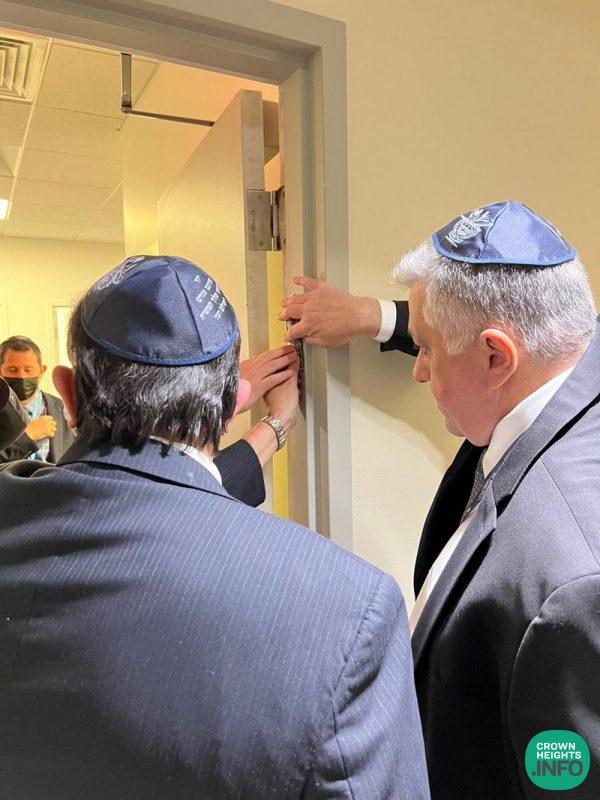 Rabbi Yossi Rapp of ChabadAir was on hand to affix Mezuzos on the company’s operations and security offices, and join the other officials in celebrating the reopening of the route.
