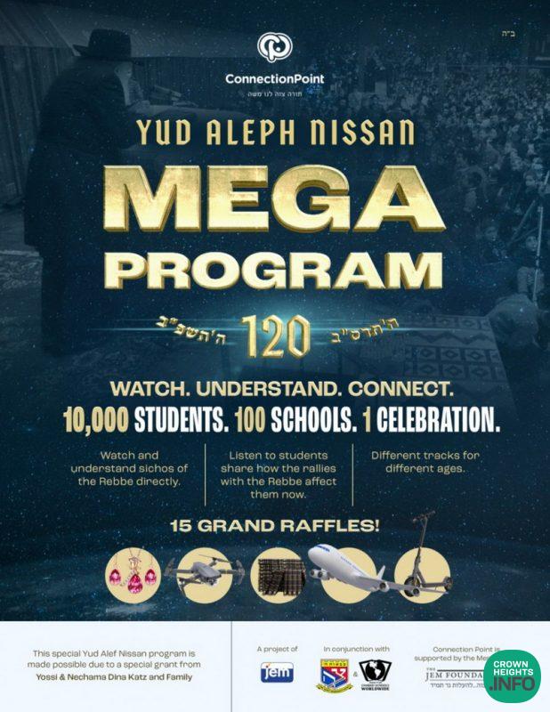 In honor of the Rebbe’s 120’s birthday, Connection Point is excited to announce “Yud Alef Nissan Mega Program” that will give children an appreciation for the Rebbe’s special connection with children, and help them relate to their own special connection with the Rebbe.