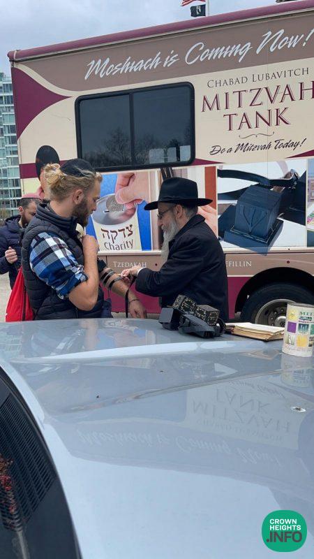 While creating a music video at Grand Army Plaza and 770 Eastern Parkway in Brooklyn, Jewish Superstar singer Avraham Fried tracked down a Jewish man who had never before put on Tefillin, and immediately wrapped him up.
