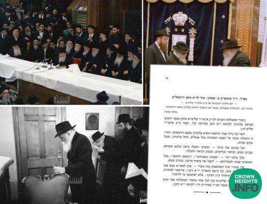 Rabbi Sudak understood that the Rebbe’s intention was that he present it during the farbrengen, as indeed, many gifts were brought to the Rebbe during the occasion. But on Shabbos morning, Rabbi Chodakov approached him and told him that he would be entering the Rebbe’s room on Motzaei Shabbos along with everyone involved in the printing. He replied that the printers did not come to New York, but those who had participated in the printing expenses were present; Rabbi Hadakov said that this was indeed the Rebbe’s intention.