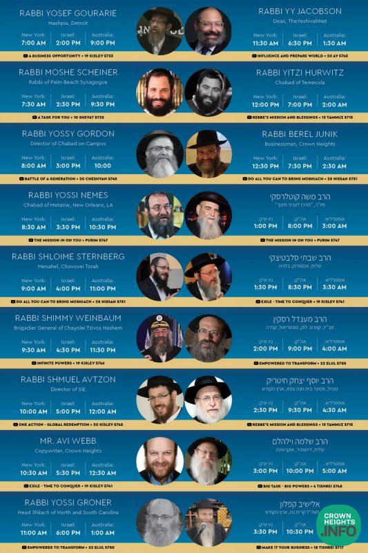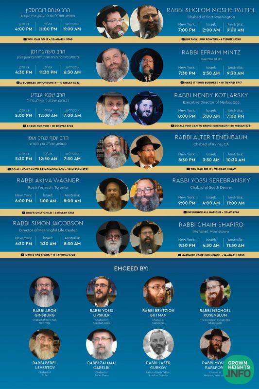 Just ahead of the Chof Ches Nissan Mega-Farbrengen, the Moshiach Office has released the event’s complete schedule, including Rabbi Hurwitz as the Keynote speaker. Chock-full of engaging presenters and helpful inspiration, the twenty-four-hour event will begin Motzei Shabbos, the 29th of Nissan. The worldwide gathering will go live at 10:00 pm, New York time. Rabbis, Mashpiim, Institutional Leaders and Businessmen will address the global Chabad community in English and Hebrew. Although each speaker brings their own unique background to the farbrengen, they will all focus their attention on a single point—everyone’s an influencer.