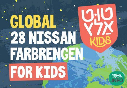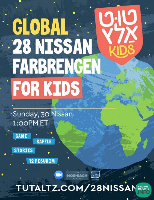 Accompanying the ongoing 24-hour global farbrengen, The Moshiach Office at Merkos 302, has a special program planned for children of all ages. The Mega Kids Farbrengen will include games, stories, and interactive activities for kids to get involved in the koach of Chof-Ches Nissan when the Rebbe said, “Tut altz vos ir ken.”