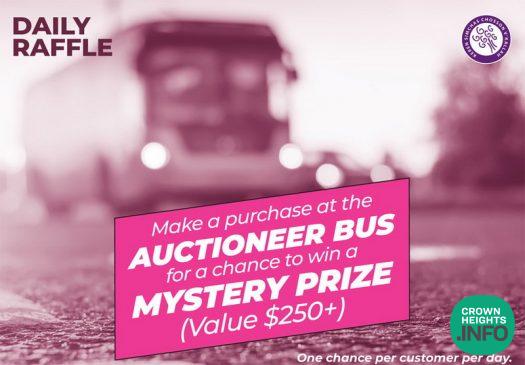 As in previous years, the KSCVK Auctioneer Bus will be coming to you, where you can purchase your auction tickets and place them in the boxes weather you are in Crown Heights, Monsey, or Cederhurst. With a purchase at the Auctioneer, you will be entered for a chance to win a mystery prize valued at $250+.