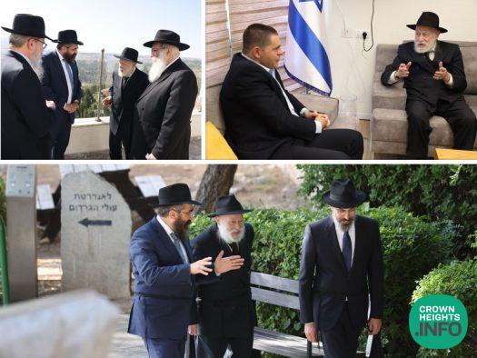 From there, the delegation ascended to the summit of the city of Safed, to the campus of Yeshivas Tzeirei Hashluchim, founded by Rabbi Leib Kaplan at the initiative of the Merkos L’inyonei Chinuch. There they were greeted by Rosh Yeshiva Rabbi Shneur Zalman Kaplan.
