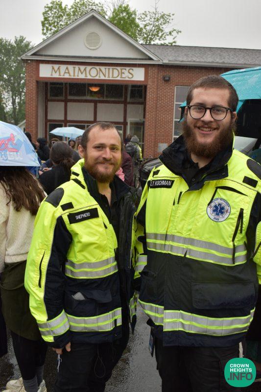In addition to the usual Albany Police escort, this year an ambulance joined the parade, playing Jewish music from its loudspeaker. Upon arrival at Washington Park, at a break in the rain, the twelve pesukim were recited. When students returned to school they were greeted with hot soup and a magic show.