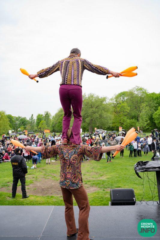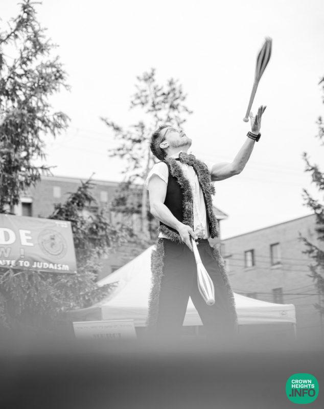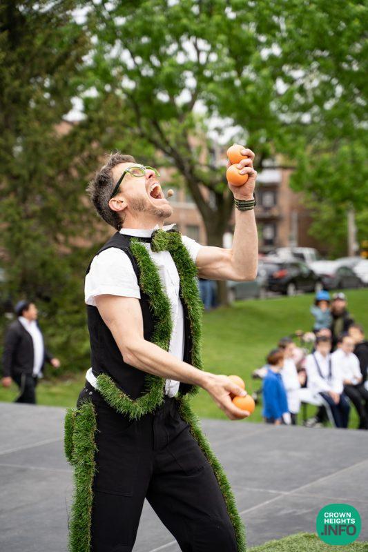 Children marching held signs in both English and French calling to “Learn Torah” and “Love your fellow Jew” as they walked down Westbury Avenue to Mackenzie Park towards a fascinating concert circus.